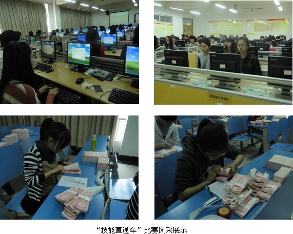 比赛在技能部的组织下有序地进行着。传票比赛中,参赛的同学们迅速地翻页、输入数字,双手之间的配合熟练而又灵巧。五笔比赛中,同学们灵动的双手飞舞在键盘上,短短几分钟已经打出了数行文字。比赛一场紧接着一场,紧张的时间总是过的格外的快。点钞比赛中,单指与多指各显所长,同学们流利地捆钞、敲章、整钞一气呵成。在参赛同学们自信的微笑下,此次比赛圆满结束。