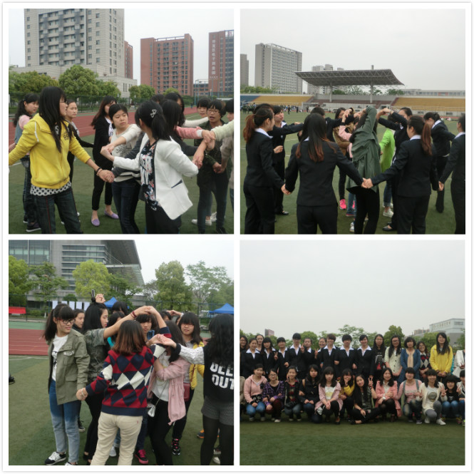 在这次班级心理素质拓展活动中,会计系各班级同学们都积极投入,认真配合。比赛采取团队智勇闯关的形式,会计系心理保健服部对报名同学进行组合分配,打乱原有班级形式,增进同学间的相互了解。比赛规则是14人围成一个圈,每只手都错开拉紧,不能拉相邻同学的手,然后解开成圆,最终成为同心圆或一个大圆或两个小圆,要求解结的过程中不能松手。最短时间内完成解结的获胜。最后,班级心理素质拓展活动在积极而欢快的氛围下落下了帷幕。