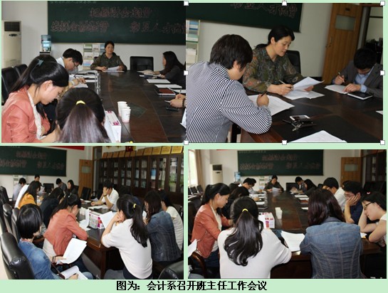 为落实好订单班招聘和“爱生节”的各项工作,我系于5月14日下午召开班主任工作会议。会议由会计系党总支副书记邵月花主持,计系全体辅导员、2012级、2013级班主任参加。