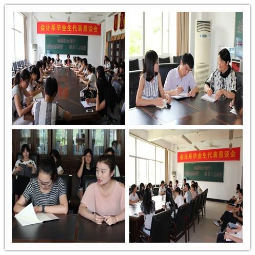 为广泛听取毕业生对我系的合理化建议,更好地推动我系科学发展,我系于6月10下午13:30在7218会议室举行2014届毕业生代表恳谈会。会计系党总支副书记邵月花、系副主任助理李华、辅导员陈小腊及毕业生代表出席本次会议。