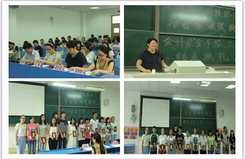 6月23日中午,会计系在7119举办了会计系技能尖子非技能尖子擂台赛颁奖典礼暨第七期“金手指”工程结业典礼。系党总支副书记邵月花、系学生工作办公室主任王琴、系辅导员陈小腊、王珠珠和获奖学生、技能尖子班成员出席本次颁奖典礼。