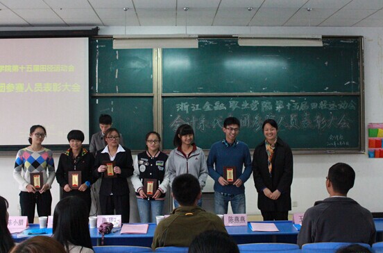 为表彰先进,树立典型,我系于11月13日在7219教室召开院第十五届运动会会计系代表团参赛人员总结表彰大会。系党总支副书记邵月花,体育军训部教师靖庆磊,系学工办主任王琴,辅导员陈小腊、王玉龙,团学干部,运动员及运动会工作人员出席了本次会议。会议由陈小腊主持。