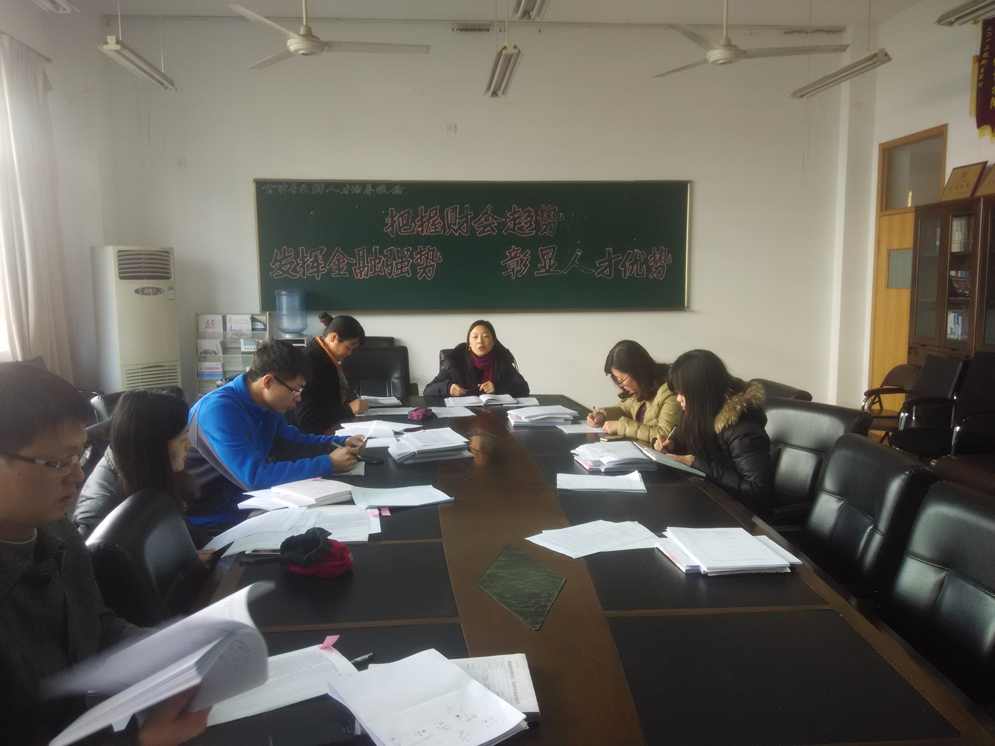 为切实做好2015届毕业生期末和毕业实习阶段的各项工作,12月24日下午,会计系在7218会议室召开毕业班学生工作会议。系党总支书记、系主任孔德兰,系党总支副书记邵月花,2015届毕业班班主任和辅导员参加了此次会议。会议由系党总支副书记邵月花主持。