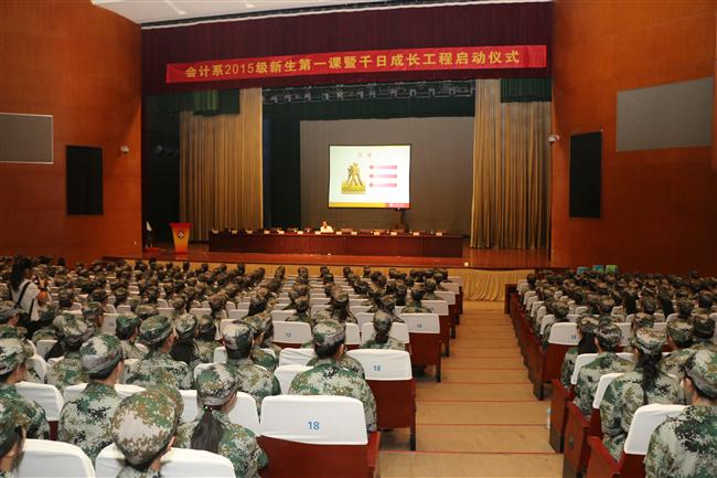 丹桂飘香,金色启程。9月16日晚,会计系2015级新生始业教育第一课在金葵花艺术中心隆重举行。学院纪委书记陈利荣为2015级新生宣讲了新生第一课。新生第一课由系党总支副书记邵月花主持,会计系党总支书记、系主任孔德兰,系办主任张惠君、系学工办副主任王琴、新生班主任、全体辅导员出席。
