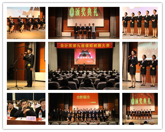 为提高会计学子现场面试能力,会计系于12月10日晚6:30在明理报告厅举行第九届模拟招聘大赛,出任本次大赛的评委有会计系党总支副书记邵月花,校友办主任沈建锋,辅导员陈小腊、王玉龙、潘宁,2013级学生会主席王轶,2014级同学到场观摩。