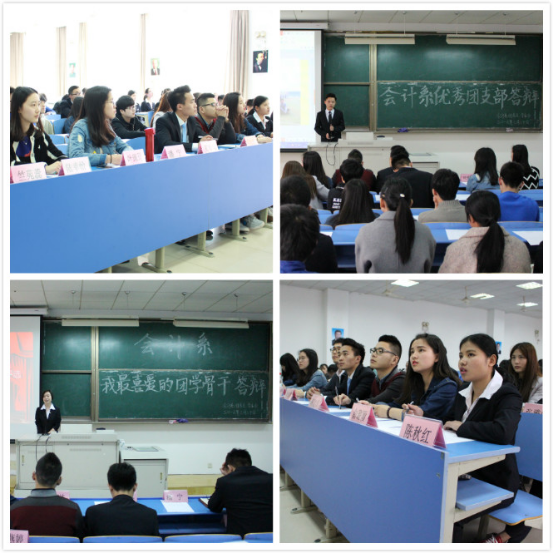 为提高学生“学优、争优、创优”的先进模范意识,增强学习自信心,树立学习榜样。会计系于3月20日下午,在7219教室召开第十一届“十佳大学生”及“我最喜爱的团学骨干”答辩会。会计系辅导员潘宁出席答辩现场,2014级、2015级学生代表到场观看。