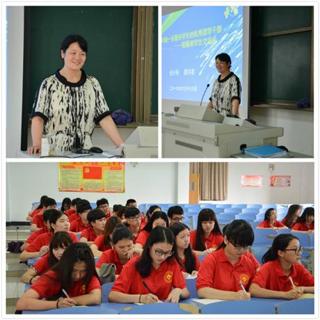 为明确团学干部队伍建设的发展方向,增强团学干部的使命感和责任感,推动系部工作的开展。会计系于6月16日下午16点在7219集体教室开展了以“如何做一名服务学生的优秀团学干部”为主题的银雁班第二次理论培训,会计系党总支副书记邵月花为主讲人,会计系辅导员潘宁及2015级银雁班学员到场参加。