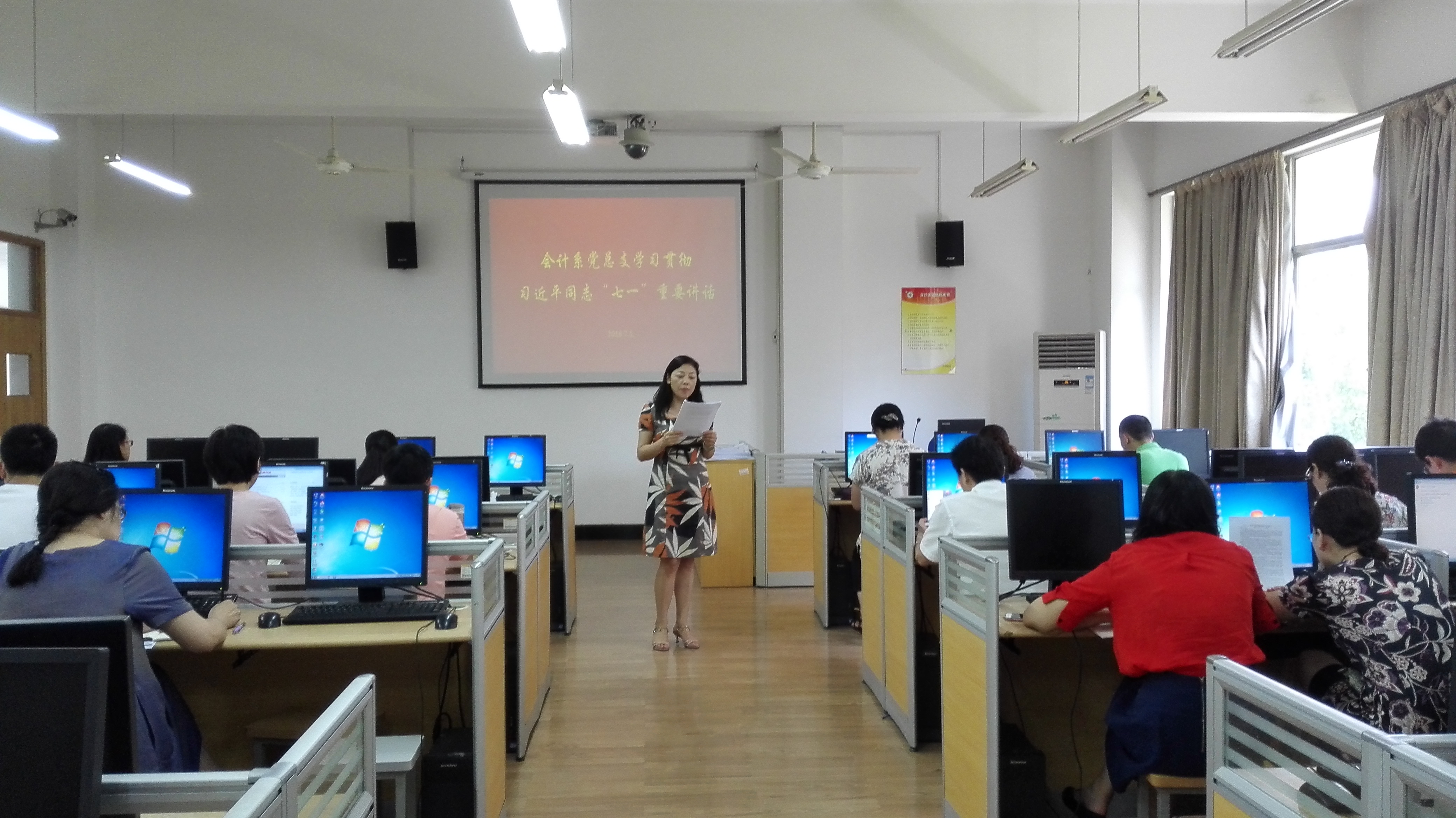 7月5日上午,会计系党总支召开专题学习会,学习传达习近平总书记在庆祝中国共产党成立95周年大会上的重要讲话精神。全体党员教师参加学习会,系党总支书记、系主任孔德兰主持学习与讨论。