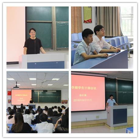 为了推动新学期学生干部工作更好地开展,会计系于9月11日下午15点在7319教室召开了新学期学生干部会议,会计系党总支副书记邵月花为主讲人,会计系辅导员陈小腊、潘宁及2014级学生干部到场参加。