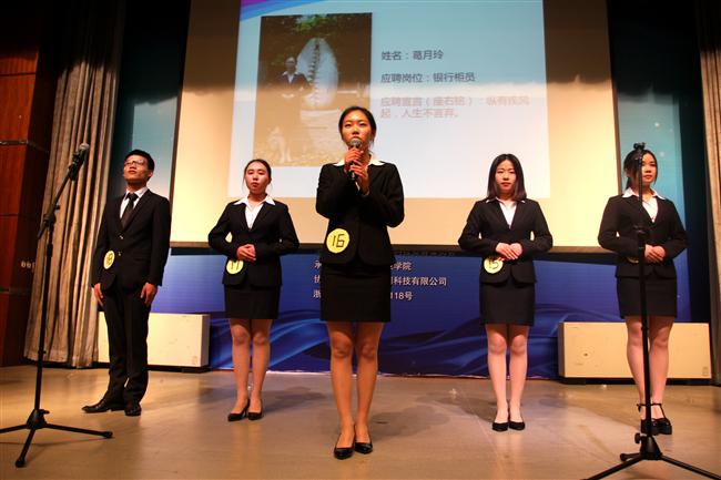 为了提高大学生的求职能力和求职技巧,会计学院于4月13日晚上6点在明理报告厅举行第十届模拟招聘大赛决赛。会计学院党总支副书记邵月花,银领学院职业礼仪教研室教师吕虹,会计学院学工办副主任、团总支书记陈小腊,人文艺术学院辅导员韩建华,金融管理学院辅导员李丹宁,教务处教学建设科科员黄文妍,工商管理学院辅导员郭菲烟,会计学院辅导员陈文菁、潘宁、王心怡,2014级学生会主席徐步高以及2015级全体学生到场参加。