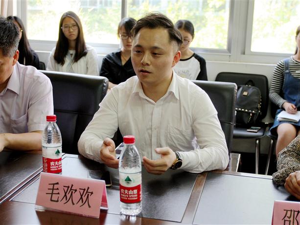 会议伊始,毛欢欢表示同学们要以各项特色活动为契机,展现自我,感恩母校。随后,毛欢欢从认识自我、技能训练、人际交往、职业规划四个方面与同学们分享了经验,畅谈了感悟。认识自我上,他指出自己酷爱唱歌和运动,并结合自己在文体方面取得的荣誉告诉同学们要善于认清自身优势,不断发挥自身特长。技能训练上,他提出“坚定技能是成功的助推器”的观点,鼓励同学们要相信勤能补拙、水滴石穿,在坚持不懈中超越自我。人际交往上,他通过诉说自己从柜员到客户经理再到支行行长的经历,告诉同学们为人处事方面要懂得谦虚谨慎、善于分享交流。职业规划上,他强调同学们要有明确的职业规划和坚定的目标,并脚踏实地地去为自己的美好人生而奋斗。