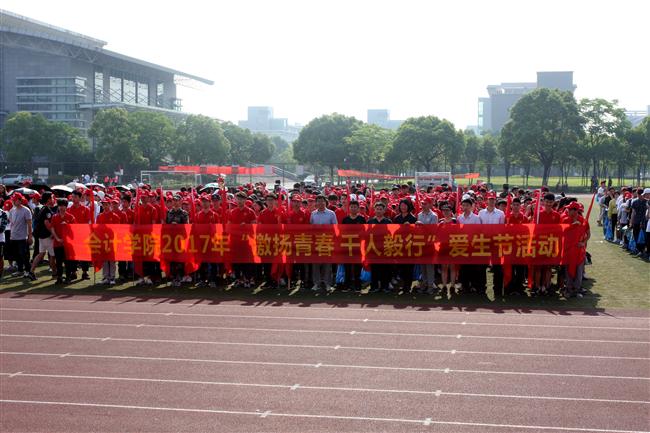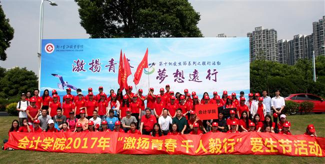 5月21日清晨,烈日炎炎,骄阳似火,浙江金融职业学院第十个爱生节系列活动之“激扬青春,梦想远行”毅行活动在学校华夏运动场正式启动。会计学院顺应学校的号召,在学院党总支副书记、副院长王忠孝,党总支副书记邵月花,副院长、财务管理教研室主任姚军胜,团总支书记、学工办副主任陈小腊,辅导员潘宁、王心怡以及各班班主任的带领下,组织2015、2016级学生踏上了毅行之旅。