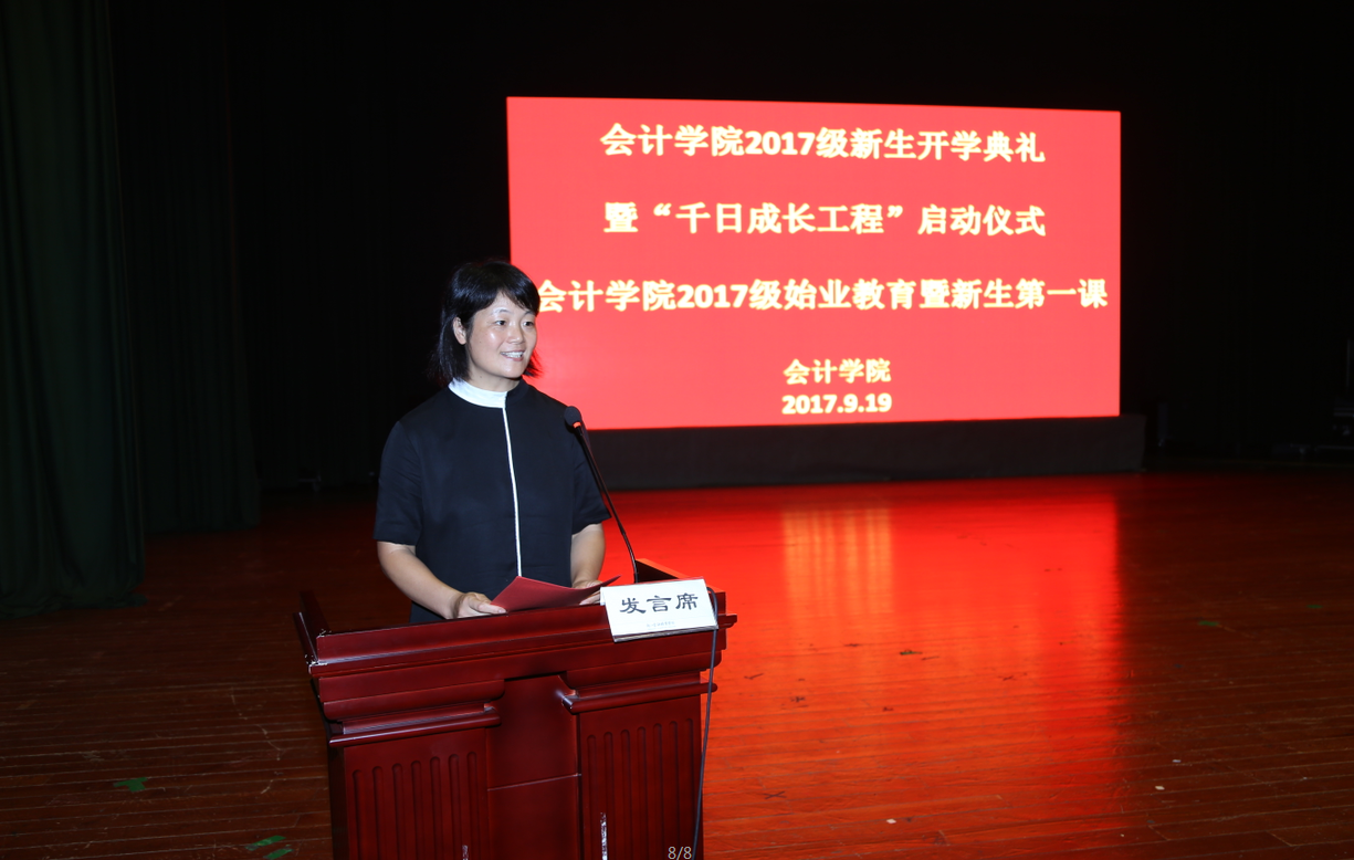 会计学院2017级新生开学典礼暨“千日成长工程”启动仪式的举行,让2017级全体新生完整地认识了会计学院,初步培养了大家集体荣誉感与专业认同感,了解了会计学院人才培养理念和“千日成长工程”的精髓,为全体新生做好大学生职业生涯与学业生涯规划奠定了坚实的基础。
