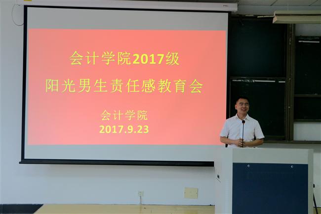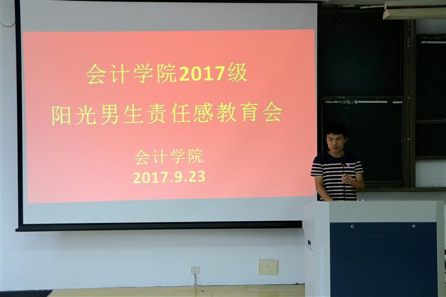 为了培养同学们的责任感与使命感,会计学院于9月23日下午3点整在7219教室开展了2017级阳光男生责任感教育会。参加本次会议的有团总支书记陈小腊, 辅导员周遂,来自杭州联合银行蒋村支行2014届毕业生刘海军、浙商银行九堡支行2016届毕业生黄益伟、杭州联合银行九堡支行2017届毕业生赖立楠以及2017级全体男生。会议由陈小腊主持。