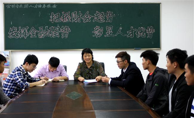 2017年10月12日,会计学院组织了退伍士兵和军训教官在7218会议室召开退伍士兵座谈会暨军训教官表彰会,参加本次会议的有会计学院党总支副书记邵月花,会计学院团总支书记陈小腊,辅导员周遂。会议由邵月花主持。