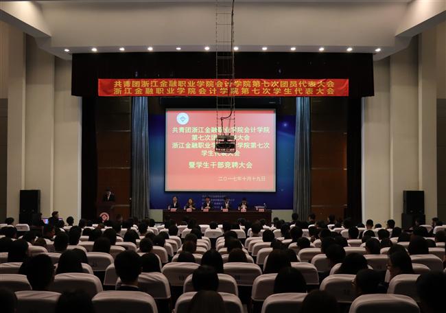 金秋十月,人才济济。10月19日下午5点30分,在庄严的国歌中,会计学院第七次团员代表大会、第七次学生代表大会暨2017年会计学院学生干部换届竞聘大会拉开帷幕。参加此次大会的嘉宾有会计学院党总支副书记邵月花,学校团委副书记许杰,会计学院团总支书记陈小腊,金融管理学院团总支书记王子慷,投资保险学院团总支书记苏浩,学校团委副书记、学生会主席戚朔余同学以及兄弟学院团总支学生会代表。会计学院100多位学生代表、102位学生候选人参加本次投票及竞选。