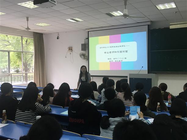 会计学院会计专业在10月12日至10月20日期间,分别对会计2017级13个班级开展了13场新生始业教育活动。为了保证始业教育做在实处、取得实效,真正做到老师与学生面对面,会计专业本次始业教育严格以班级为单位,小范围多次展开。会计教研室主任杨艾老师、副主任安娜老师和李洁老师分别主持了上述活动。