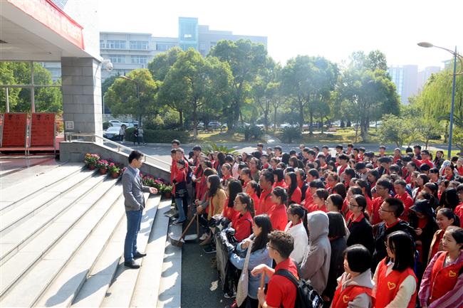 活动伊始,陈小腊发表鼓励致词,他表示志愿者们应发扬服务奉献精神,以实际行动为校庆创造干净整洁的校园环境而献礼。
