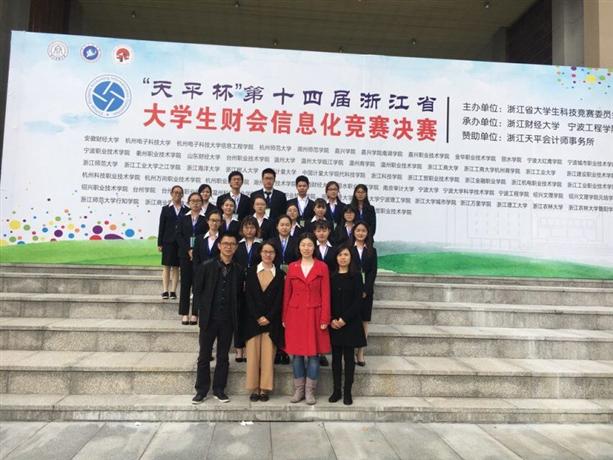 浙江省第十四届财会信息化大赛决赛于2017年11月12日在宁波工程学院落下帷幕,经过激烈的角逐,会计学院学子斩获了1个省一等奖、5个省二等奖、4个省三等奖,有史以来第一次10支参赛队伍全部获奖的优异成绩;其中由彭博、杨艾两位老师指导的蔡海伟、李勇锋、汪健霞团队斩获一等奖,由雷舰、费含笑老师指导的刘奕文、管夏飞、王雨阳、毛燕洲、罗婉群、胡佳美团队,由陈文菁 桑滨老师指导的邢菲莎、滕亚丹、杨金丽团队,由姚军胜、安娜老师指导的徐梦雅、林婷婷、童莲芝团队以及由杨艾、彭博老师指导的彭晓丹、赵苏婷和柳超强团队斩获省二等奖,另外还有4组队伍斩获了省三等奖的佳绩。