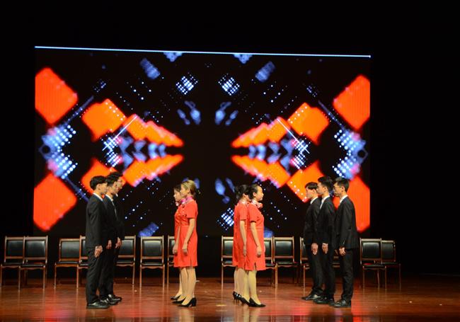 比赛第一项,一对一辩论赛。各组选手借着随机的辩题,在台上即兴发挥,选手们认真的态度和自信大方的举止赢得了评委老师的肯定,也获得了观众的热烈掌声。他们用流利的谈吐,幽默风趣的言语进行自己着的辩论,展现了他们的应变能力以及语言组织能力。