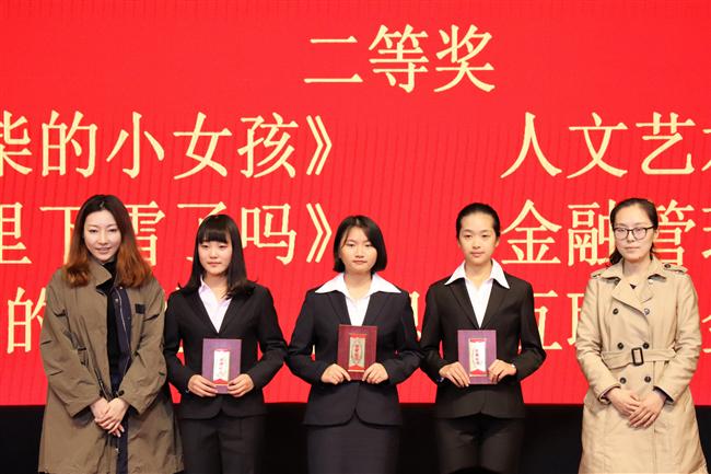为了提高金院学子的朗诵和语言能力,丰富同学们的舞台经验和课余生活,11月14日下午6点30分,由浙江金融职业学院团委举办,会计学院团总支金口才承办的浙江金融职业学院第二届“金音杯”朗诵比赛决赛在金葵花艺术中心隆重举行。担任本次大赛的评委的有会计学院党总支副书记邵月花,浙江财经大学艺术学院团委书记陈宝明,浙江农林大学暨阳学院招生主管孟宪军,校团委谢瑞琦,金融管理学院学工办副主任王子慷,投资保险学院学工办副主任苏浩,会计学院学工办副主任陈小腊,国际商学院学工办副主任吕希,信息技术学院学工办副主任余彦,会计学院辅导员潘宁、王心怡、周遂以及校友毛哲楷、戴娜。各学院学生代表到场观看。 大会伊始,邵月花致词,她阐述了此次举办“金音杯”活动的目的,鼓励同学们多参与校园文化活动,发挥特长,展现才干,并宣布比赛正式开始。比赛现场气氛热烈,同学们热情高涨,各学院的选手们经过初赛的严格筛选脱颖而出,九支队伍进入决赛,他们以饱满激情的语言、大方得体的举止来展现自己的实力,把对文章里的一字一句表达的淋漓尽致。在比赛的过程中,选手们表现自信,用优美的嗓音与昂扬的情绪,感染着在场的每一位评委和观众。朗诵者们围绕“爱国、亲情、爱情和山水之情”等主题深情款款的朗诵,表达了他们对祖国的热爱、对亲情的珍惜、对山水的喜爱,他们精神抖擞、神采奕奕地朗诵将观众带入了另一个精神世界。现场精彩不断、掌声连连。 期间,精彩的舞蹈表演和生动的歌唱演绎缓解了现场紧张的气氛。比赛尾声,第一届金音杯朗诵比赛冠军团队导师戴娜对选手们进行了点评,她现是肯定了参赛选手们的现场表演,接着向同学们分享了朗诵的技巧,并指出语言表达能力在职场生活中的重要性。最后,原广播台副台长毛哲楷校友深情地演绎了诗歌《回答》,比赛在观众的掌声中落下帷幕。 本次比赛,会计学院代表队带来的《钢铁》荣获大赛一等奖。朗诵比赛的举行为同学们提供了一个展现自我的平台,培养学生们对诗歌的兴趣,展现了新时代大学生的风貌,为浙金院精神文明建设打下良好基础。