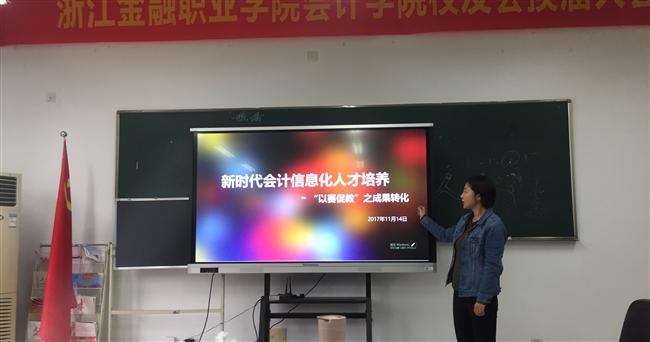 王岳聪老师就“基于财报视角下“高职基础会计”课程构建探索”的主题,从背景、现状分析、内涵和创新点四个维度分享了培训的经验,提出在目前”大智移云”会计趋势下,教师们应该从高职学生学情视角重构“基础会计”课程教学,即从常规经营活动入手,把基础会计的知识点与分析讨论业务活动相结合来进行授课,使学生不仅仅局限于“借”与“贷”的会计分录的学习与填写。
