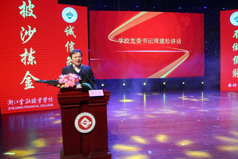 会上,周建松书记发表重要讲话。周书记首先代表学校党委向会计学院一年来在党的建设、专业建设、课程建设、学生技能竞赛等各个方面所取得成绩表示热烈的祝贺,向付出辛勤劳动的会计学院全体师生表示衷心的感谢。他认为会计学院在学校的发展过程中,一直走在前列,从会计学院率先试验起步的“千日成长”工程,为我校做好育人工作发挥了卓有成效的推动作用。在肯定成绩的同时,周书记对会计学院工作提出了更高的要求,他希望会计学院应该树立更高的发展目标,尤其是在党的十九大提出中国特色社会主义已经进入新时代的之际,结合新时代要有新的目标、新的要求,迈向新的征程。同时,周书记勉励同学们要继续勤奋学习,苦练技能,努力做又红又专的中国特色社会主义的合格建设者和可靠接班人。