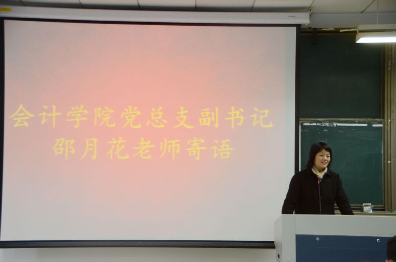 颁奖完毕,技能尖子代表胡辽浙同学发表演讲,他用自己的亲身经历向同学们传授经验,作为过来人,他告诫在座的同学要勤学苦练、融会贯通、实事求是。最后,邵月花发言结束本次典礼,她指出,这些荣誉是对会计学子勤练技能的肯定,也是对会计学子的鞭策。在新的一年,她对会计学院全体同学提出了新的要求。一分耕耘一份收获,她相信会计学院的学生会苦练技能,扎实专业,为会计学院争夺更多的荣誉。