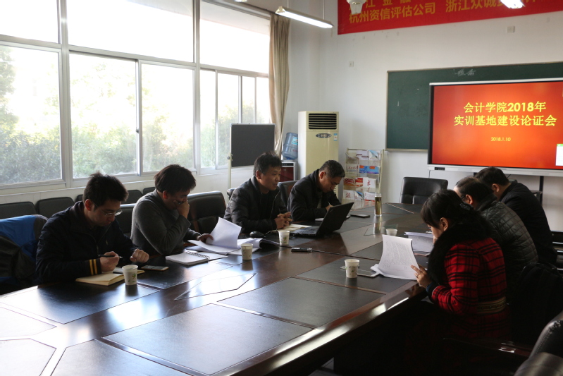 为进一步加强实训基地建设,深化产教融合,1月10日下午,会计学院举行了2018年实训基地建设专家论证会,邀请了浙江财经大学叶谦教授、浙江经济职业技术学院财会金融学院聂华院长、杭州科技职业技术学院工商学院陈晨院长等三位专家,参加论证会的还有会计学院副院长王忠孝、副院长姚军胜,实践教学与网络中心卢竹林、施高乐老师。