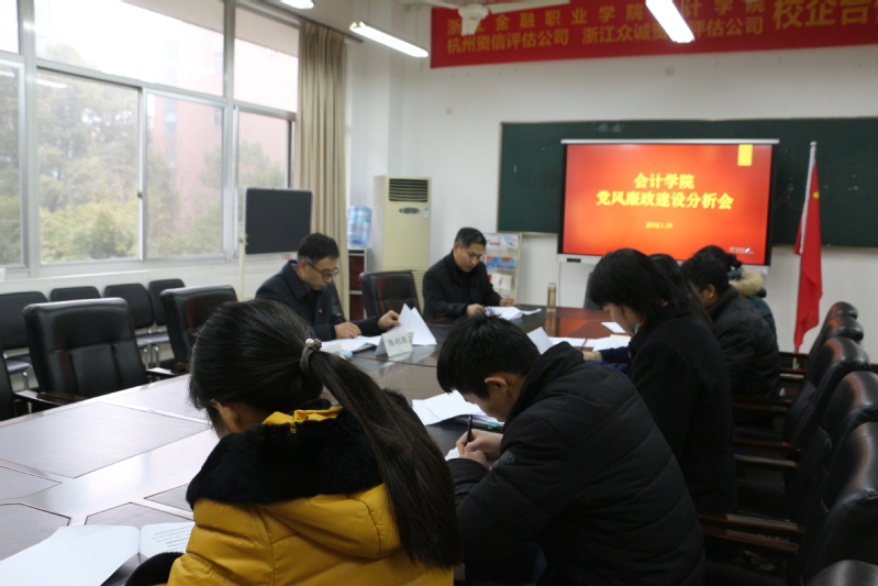 1月19日下午,会计学院在7218会议室召开党风廉政建设分析会,学校纪委书记陈利荣和会计学院党政领导班子全体成员参加了本次会议。会议由学院党总支副书记、副院长王忠孝主持。