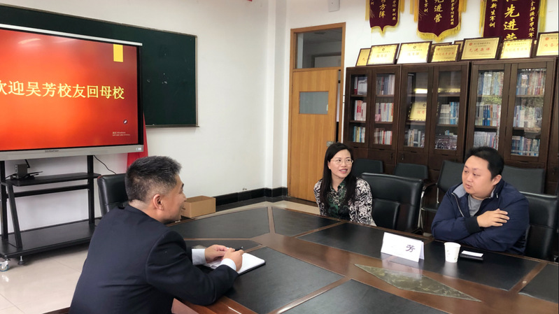 王忠孝对吴芳校友回到母校表示热烈欢迎,并介绍了会计学院目前的基本情况。吴芳简要介绍了自己毕业后的职业发展,表示时刻关心母校,早想回来看看。