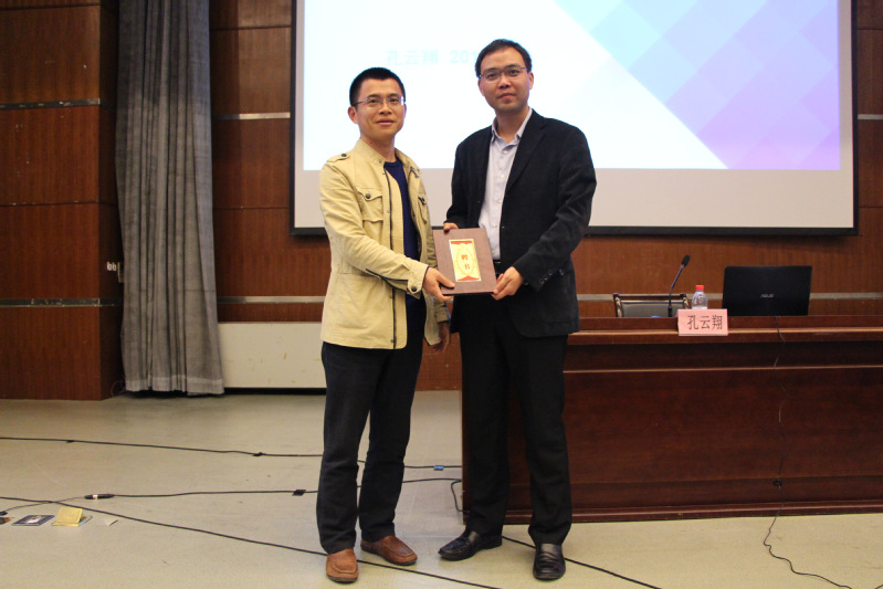 讲座开始前,由会计学院雷舰老师为孔云翔颁发了会计学院为期三年的特聘教授聘书。