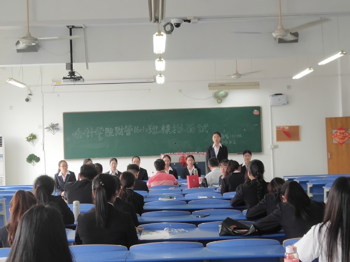 为落实学院“关爱学生进步、关注学生困难、关心学生就业”为核心内容的“三关”学生工作服务体系,提高我院学生就业竞争力,更好地掌握面试礼仪和技巧,会计学院于5月2日下午2:10分别在7219、7221、7319、7401、7402、7405教室对2016级各班学生党员进行模拟招聘面试。