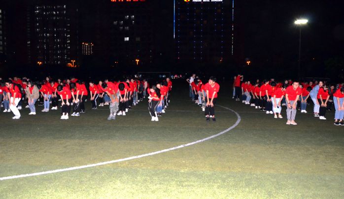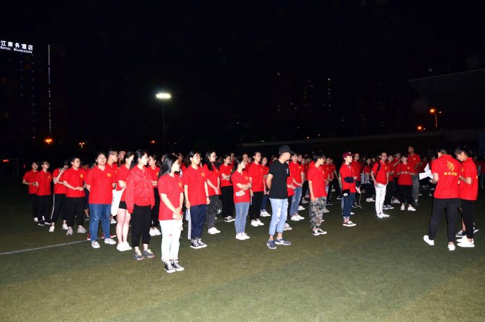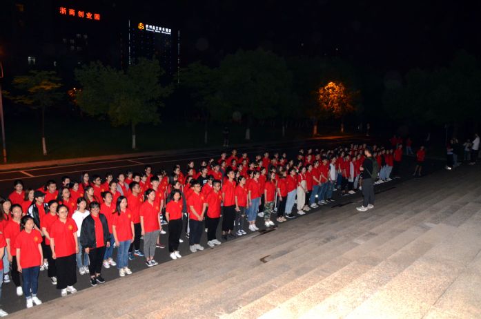 晚上9点,“银雁班”全体成员准时到达华夏运动场,在班长、组长的组织与指挥下,迅速排列成一支支秩序井然的队伍。
