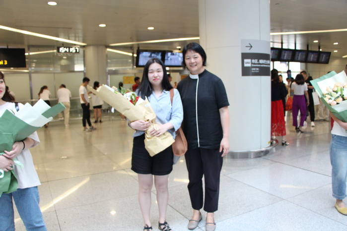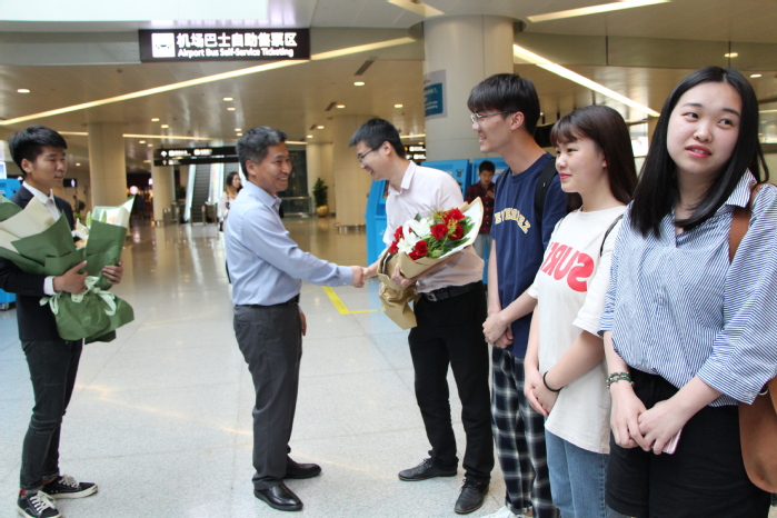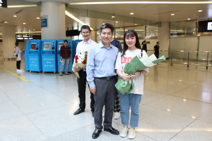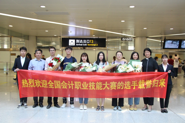 6月5日下午,满载辛勤与付出、收获与喜悦代表浙江省出战的我院会计技能国赛代表队载誉归来,会计学院党总支副书记、副院长王忠孝,党总支副书记邵月花带领两名获得省赛一等奖的一年级同学代表到机场迎接,两位领导为指导教师张亮、李洁,以及杜啸霖、林婷婷、罗婉群、童莲芝等四位同学赠送鲜花和掌声,热情拥抱了归来的荣誉者,亲切慰问了参赛学生和指导教师在比赛期间的情况,并对团队取得的成绩表示了肯定,随后在机场一起合影留念。