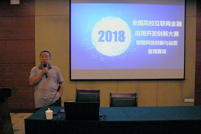 航天信息股份有限公司金税本部培训产业专项对外合作经理吴尚昊做2018年财税应用创新与运营管理大赛的介绍。