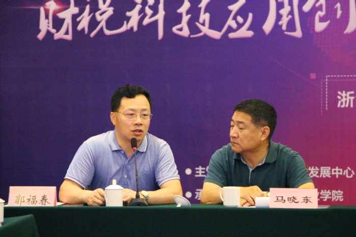 浙江金融职业学院副校长郭福春致辞。首先他对浙江金融职业学院的概况和发展历程做了一个简单的介绍。随后,他指出当今国家地税和国税在不断的整改中,在财会人才的培养方面发生了颠覆性变化,各高校应该应变而变,借助财税应用创新与运营管理大赛这个平台,强化人才培养的内在实力与水平,使教学适应于现代科技的发展,不断更新、调整教学内容,变化教学方法,实现财会人才的质量化提升,同时对教育部科技中心将2018年财税科技应用创新和运营管理大赛交由浙江金融职业院校承办表示感谢。最后,他预祝2018年财税应用创新与运营管理大赛圆满成功。