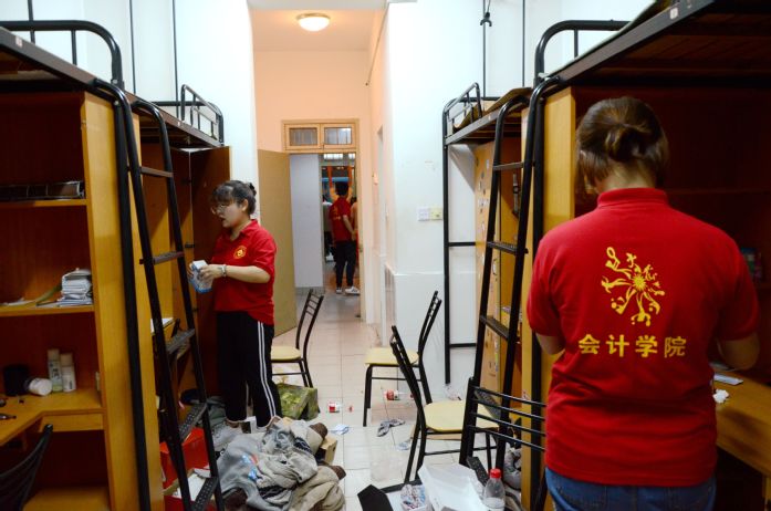 为了营造一个良好的寝室环境,促进同学们养成良好的卫生习惯,会计学院于6月7日晚上18:45分开展了毕业生寝室清扫活动。参加此次清扫活动的有2016级主席团、银雁班全体成员以及入党积极分子,此次清扫的范围为桃李苑8幢和21幢。