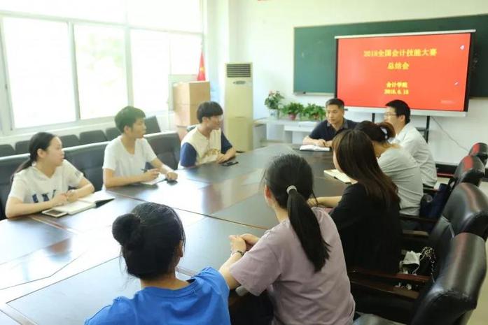 6月15日中午,会计学院召开了2018年会计技能国赛总结会,参加会议的有会计学院党总支副书记,副院长王忠孝,2018年会计技能国赛指导教师张亮、李洁,参加国赛的四名学生,会计1610班杜啸霖、会计169班童莲芝、罗婉群、林婷婷,以及两位参加省赛的选手。王忠孝首先介绍了浙江省一直以来参加会计技能国赛的情况,目前我校所取得的成绩是浙江省最好的成绩,并再一次对代表队取得的国赛成绩表示了祝贺。