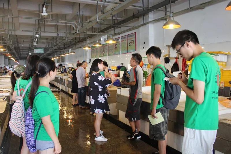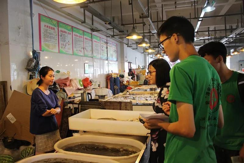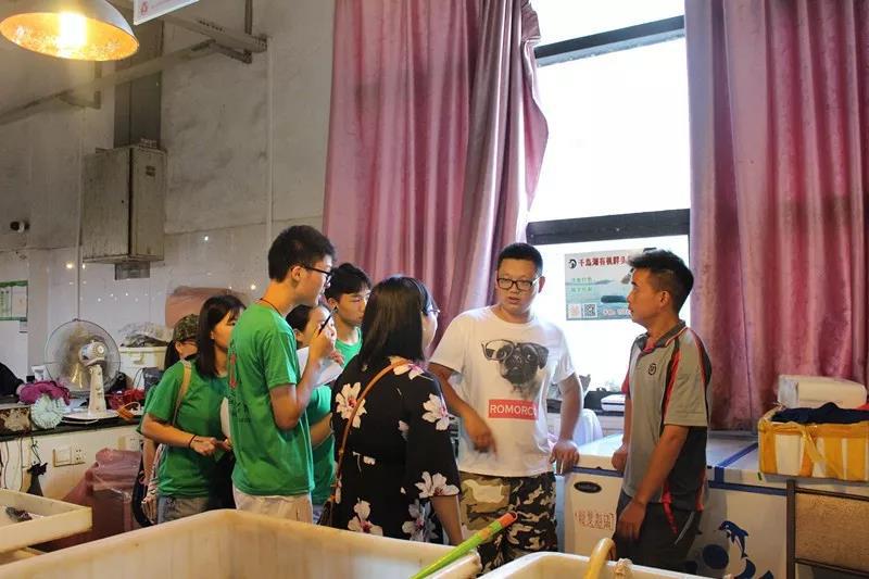 紧接着,实践小队怀着迫不及待的心情来到千岛湖农贸市场。在李亦唯老师和顺丰速运有限公司的工作人员的带领下,有效的开展了千岛湖有机鱼调研的实践活动。活动前期,两位负责人带领大家走访众多卖家,了解市场发展行情,在此过程中,队员们仔细聆听,认真记录,深入领悟,用于实践。
