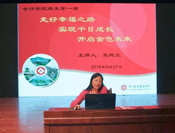 会计学院2018级新生第一课上,孔德兰以极具启发性的讲解加上生动的举例,让2018级同学们对大学生活有了一个更为深切的认识,有利于他们以崭新的姿态适应大学生活,促进自身的不断发展。