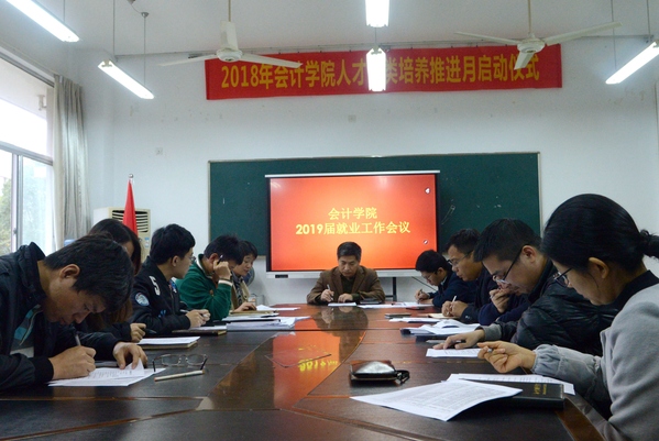 为指导和动员2019届毕业生更好的开展职业规划,认清就业形势,把握就业机会。11月14日,会计学院于7218会议室召开2019届就业工作会议。参加此次会议的有会计学院党总支副书记、副院长王忠孝,党总支副书记邵月花,辅导员王心怡、周遂以及2019届毕业班班主任。