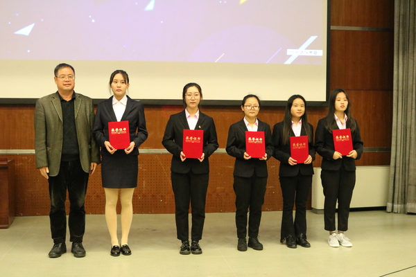个人赛三等奖:朱燕(右四)、陈丽丽(右三)、王家宇(右二)、谢婧怡(右一)