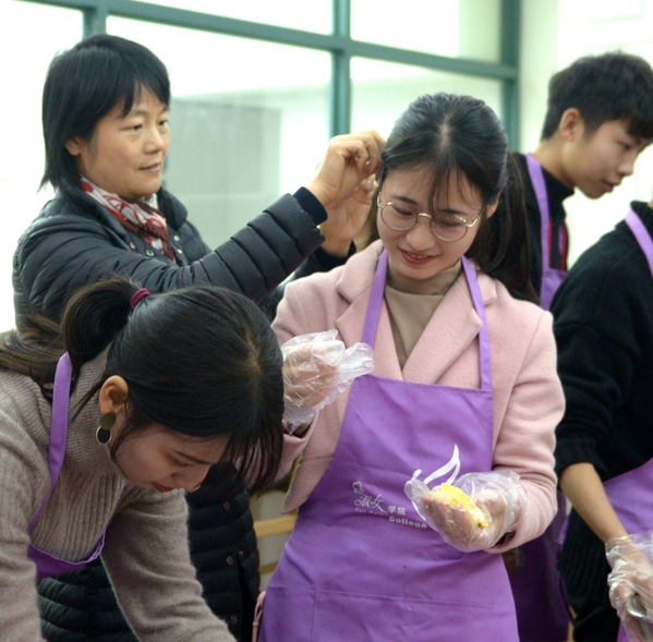 为加强我院礼仪队成员的实践能力,促进与淑女学院之间的交流,12月19日下午13:30,会计学院礼仪部与淑女学院烘焙社于金葵花艺术中心二楼联合举行了烘焙活动。会计学院党总支副书记邵月花、礼仪部成员、烘焙社成员出席了此次活动。