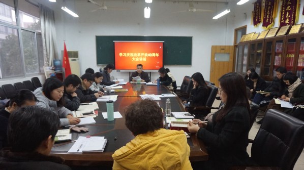 为深刻学习并领悟改革开放40周年大会精神,加深全体教师对改革创新的理解,11月26日,会计学院于7218会议室召开了庆祝改革开放40周年大会讲话学习会。此次会议由会计学院党总支副书记、副院长王忠孝主持,会计学院全体教师参会。