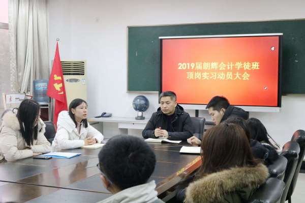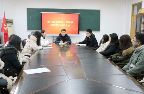 为进一步做好2019届学生顶岗实习工作,引导学生做好顶岗实习前的各项准备事项,会计学院于2019年1月4日在7218会议室召开了2019届朗辉会计学徒班顶岗实习动员大会。会计学院党总支副书记、副院长王忠孝,杭州朗辉财务咨询有限公司经理余南君,2019届朗辉会计学徒班班主任孙成龙以及2019届朗辉会计学徒班学生参加了此次会议。