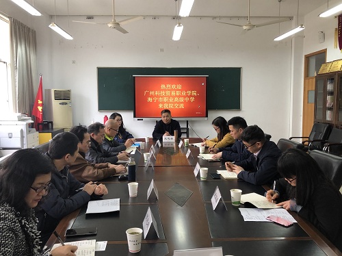 3月25日下午,广州科技贸易职业学院财经学院院长纪伟和海宁职业高级中学校长王小林分别率队来我院交流考察。会计学院党总支副书记、副院长王忠孝在7218会议室进行了接待,三方进行了友好而亲切的交谈。