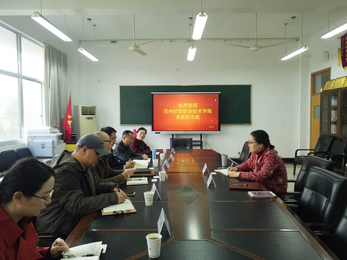 3月27日下午,苏州经贸职业技术学院会计国贸学院副院长吴冰,携同金融管理专业负责人张小龙、国贸专业负责人吴雷、会计专业副教授林成喜、团委副书记蒋靓和创新创业项目负责人陈曼曼一行人来我院交流考察。会计学院副院长李华在7218会议室进行了接待,并对吴冰院长一行人的到来表示热烈欢迎,双方进行了友好而亲切的交谈。