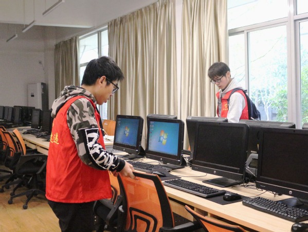 打扫的范围为7号楼1至3层的机房,由同学们自行组队。同学们认真的投入到清扫机房的志愿服务活动中。在清扫的过程中,同学们擦拭每一台电脑,清理每一张桌子,不放过任何一个角落,每个同学都有着明确的分工,他们积极的完成自己的工作。