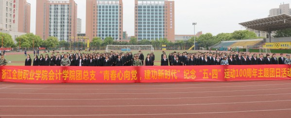 最后,全员奏唱团歌,共同宣言:“我们是浙江金融职业学院会计学院团总支,我在浙金院中信广场纪念五四运动100周年。“五四精神,传承有我!”我财会学子,愿披沙拣金,融会贯通,牢记使命,勤勉自强,不忘初心,砥砺前行,青春心向党,建功新时代。”